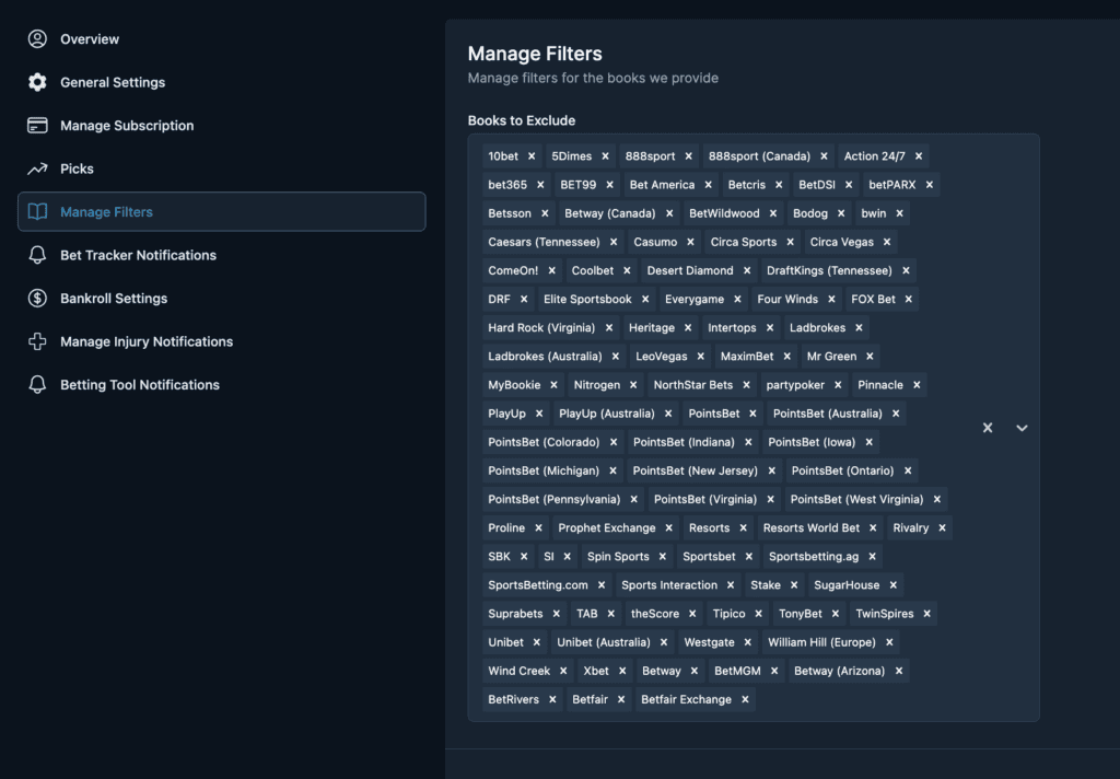 I also have been an OddsJam user since before advanced filtering was part of the tools, so I fell into this habit of excluding all irrelevant books and haven’t gone back.